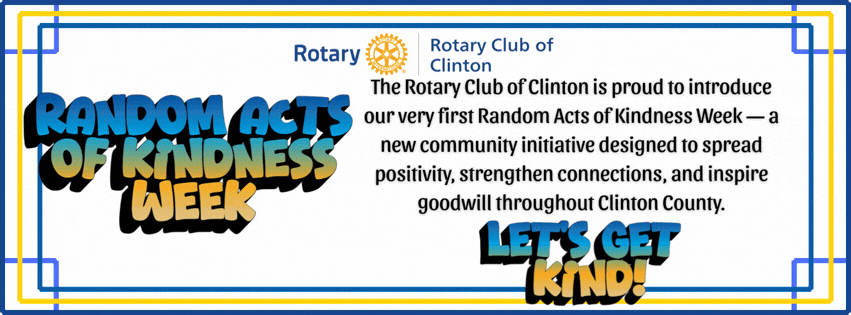 Together, we can make Clinton an even stronger, kinder place to live. Random Acts of Kindness Week offers a simple yet powerful way for the Rotary Club of Clinton to live out its mission, uplift the community, and remind others that kindness—when multiplied—creates lasting impact.